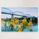 Pon tu rompecabezas haciendo habilidades en la prueba con esta toma de flores de verano a lo largo de la orilla del río Tennessee con el puente Walnut Street de Chattanooga en el fondo. Rompecabezas de 20 x 30 pulgadas con 1.014 piezas.