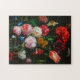 Vida con flores en una granada de vidrio (1650 - 1683) de Jan Davidsz Postcard. Esta imagen muestra un montón de flores rojas blancas y rosas con un gato.
