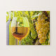 Cierre de un vaso y una botella de vino blanco con uvas cultivadas en el viñedo sobre el fondo © y ® Bigstock® - Todos los derechos reservados.