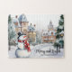 Vintage Christmas Village Scene Merry and Bright jigsaw rompecabezas