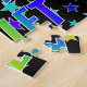 Este emocionante y animado diseño de rompecabezas con temática de cumpleaños presenta el mensaje "FELIZ CUMPLEAÑOS, VIOLET" con los personajes que tienen un coloreado patrón de gradiente inspirado en el espectro de arcoiris, además de un divertido patrón de fondo de campo estrella. Un acertado rompecabezas como este podría ser usado para enviar deseos de cumpleaños a alguien llamado Violet. [~Z0000468]
