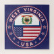 Insignia de Virginia Occidental con bandera de Virginia Occidental y bandera de los colores de Estados Unidos, forma redondeada. Emblema de Virginia Occidental,