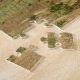 DERECHOS DE AUTOR Janis Miglavs / DanitaDelimont.com| AF16 JMI0420.jpg| Una gran vista panorámica de una gran montaña de roca dominando las pequeñas granjas adosadas, salpicadas de edificios metalizado ondulados, vistos desde la carretera cercana a Gondar, Etiopía.