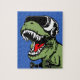 T-rex divertido con las auriculares y el auricular de la realidad virtual.