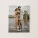 Diversión guardar el rompecabezas de fecha con una hermosa caligrafía de escritura con letras a mano sobrepuesta en tu foto. Agregue sus nombres, fecha y ubicación de boda al personalizar. Envíe a sus invitados especiales o utilice como un favor para una fiesta de compromiso, una ducha de novia o una fiesta de soltera. Sencillo pero moderno - se coordina maravillosamente con muchos de los estilos bodas actuales.