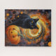 Un gatito negro y elegante con ojos que brillan como la luna de otoño, una linterna alegre y un torbellino de magia de Halloween en el fondo, este rompecabezas es una deliciosa mezcla de fantasmal y lindo. Ideal para los amantes de Halloween y de los puzzles.