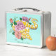 Un Python albino amarillo se acerca a los rosas rosados y melocotones en un telón de fondo de verde azulado.