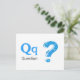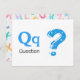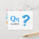 "La carta Q es para la pregunta" en nuestro juego de tarjetas de flash de alfabeto. ¡Obtén las 26 letras del alfabeto! Una tarjeta postal de doble cara que es ideal para juegos de memoria y enseñanza, dirigida a la educación, escuelas, profesores y escolares para niños en kindergarten y bebés. Todo el texto es editable si necesita un personalizar.