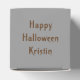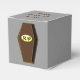Esta impresionante caja de favores tiene un ataúd espeluznante hecho de madera con un borde dorado. La tapa del ataúd está ligeramente abierta, lo que revela sólo oscuridad en el interior. La placa dorada en la parte delantera del ataúd tiene un espeluznante texto negro que dice RIP, sin dar idea de quién o qué puede estar acechando dentro. Este divertido pero siniestro ataúd es ideal para Halloween. El fondo gris oscuro actúa para atraer el ojo del observador hacia el ataúd de la fatalidad. Hay texto de personalizable en la tapa superior para que pueda personalizarse con el texto que elija.