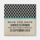 Elegante y moderno Quatrefoil de Moda Salven el imán de fecha con un fondo de diseño marroquí, un fondo de papel vintage y un par de delgadas rayas turquesas. Este elegante ahorra el imán de fecha es fácil de personalizar con los detalles de su boda. Haga clic en "Personalizar" para encontrar más opciones de personalización.