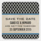 Moda elegante y moderna Quatrefoil Salven a los Pegatinas Date con un fondo marroquí de moda, un fondo de papel vintage y un par de delgadas rayas azules reales. Estos elegantes ahorran a los pegatinas de fecha fácil de personalizar con los detalles de su boda. Haga clic en "Personalizar" para encontrar más opciones de personalización.
