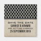 Elegante y moderno Quatrefoil de Moda Salven el imán de fecha con un fondo de diseño marroquí de moda, un fondo de papel vintage y un par de delgadas rayas grises de carbón vegetal. Este elegante ahorra el imán de fecha es fácil de personalizar con los detalles de su boda. Haga clic en "Personalizar" para encontrar más opciones de personalización.