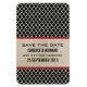 Elegante y moderno Quatrefoil de Moda Salve el imán Date Premium con un fondo de diseño marroquí, un fondo de papel vintage y un par de delgadas rayas rojas. Este elegante ahorra el imán de fecha es fácil de personalizar con los detalles de su boda. Haga clic en "Personalizar" para encontrar más opciones de personalización.
