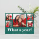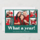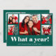 Esta sencilla y divertida tarjeta de vacaciones de varias fotos dice "¡Qué año!" en tipografía moderna blanca sobre un fondo verde festivo con una cuadrícula de cinco fotos en la parte frontal de la tarjeta. La parte trasera contiene dos fotos más, además de un espacio para agregar su propio mensaje personal. Una forma linda y elegante de celebrar llegar al final de un año muy difícil. Perfecto para Navidad o Año Nuevo.