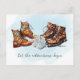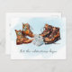 Anuncia a tu nuevo compañero de aventuras con estos anuncios de embarazo al aire libre. Este diseño incluye gráficos de acuarela de botas de senderismo y puede incluir tu mensaje personalizado en la parte posterior.