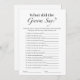 Presentamos "¿Qué dijo el Groom?" - una tarjeta de moda y minimalista ducha de novia en blanco y negro diseñada por CaMiDesigns. Este divertido juego es perfecto para añadir un toque de emoción a tu ducha de novias, permitiendo a los huéspedes probar sus conocimientos de los pensamientos y experiencias del novio. Con su elegante diseño, se complementa a la perfección con cualquier tema de la ducha de novia. Para cualquier ayuda con pedidos, envío, información de productos y más, por favor contacte directamente con el Servicio de atención al cliente de Zazzle.