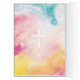 Deséenle a alguien una Pascua feliz con esta tarjeta caligráfica única y estilo con letras a mano, que incluye el mensaje, "Que Dios te bendiga con abundante alegría en el día de Pascua y siempre". Incluye acentos cardíacos, florales y cruzados con un fondo acuático colorido. Adentro incluye este mensaje pero puede ser personalizado para que se ajuste a sus propias necesidades: Que su casa esté llena de la paz, esperanza y alegría de Dios este Día de Pascua y siempre.