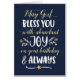 Deséenle a alguien un feliz cumpleaños con esta singular tarjeta caligráfica y estilo de letras a mano, que incluye el mensaje, "Que Dios te bendiga con abundante alegría en tu cumpleaños y siempre". Incluye acentos de corazón, flor y tipo con fondo de flores púrpura descolorido. En el interior se incluye una placa con letras a mano con palabras, "con amor" acentuada con corazones y flores con marcador de posición para su nombre o firma debajo.