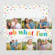 Envía la alegría y la diversión del año con la Tarjeta Navideña de Collage de Seis Fotos ¡Oh qué diversión! Esta tarjeta de felicitación presenta un saludo, ¡oh qué diversión!, en una letra caprichosa y colorida rodeada de lunares brillantes y coordinados. Con espacio para seis fotos en la parte delantera, es una forma perfecta de mostrar tus recuerdos más felices del año. La alegría de la tarjeta continúa en la parte posterior con lunares coincidentes.