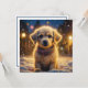 Perro cachorro lindo afuera en una nevada tarjeta de Navidades personalizada por la noche.