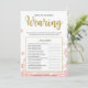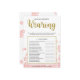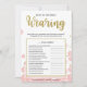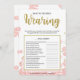 Este moderno juego de ducha con flores "What is the Bride Wearing" incluye un fondo floral rosa con toques purpurinas dorados. El texto está escrito en una mezcla de un lúdico tipo de letra caligrafía y un moderno tipo de letra sans, esta carta se personaliza con el nombre de la futura novia y la fecha de la ducha de novia.