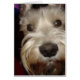 Esta tarjeta contiene un inquisitivo Schnauzer en miniatura blanco. Se está asomando directamente a la cámara, preguntándose qué estás haciendo. Este botón es perfecto para el amor del perro y los amantes Mini especialmente!