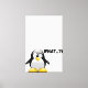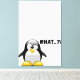 Una obra de arte divertida y humorística que presenta un pingüino personalizado adorable con una expresión desconcertada. El atrevido texto "¿QUÉ...?" agrega un toque divertido y peculiar, convirtiéndolo en una pieza perfecta para los amantes del arte mural alegre, alegre y único. Ideal para las habitaciones, oficinas y todo aquel que disfrute de una buena risa.
