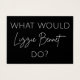'¿Qué haría Lizzie Bennet?' frase inspirada en la heroína Elizabeth Bennet de Jane Austen del libro Orgullo y Prejuicio. Acentúa tu estilo y espacio con este arte inspirador. Un gran regalo para los fanáticos clásicos de la literatura.