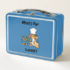 Un bonito conejo cocinando zanahorias en la estufa. ¿Qué hay para almorzar? Personalizar el dorso de la lonchera y el color que ahora es azul.