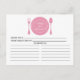 Tarjetas de recetas de cocina contemporáneas para ducha de novia con un elegante plato rosa con tenedor y cuchara sobre un fondo blanco y fresco. La parte delantera de nuestra receta ofrece espacio para un título de receta, desde la cocina de y el espacio de ingredientes. Girar nuestra receta para ver las direcciones, el tiempo de preparación y el tiempo total. Visite nuestra tienda para recibir invitaciones a la ducha nupcial. Disponemos de una gran variedad de colores de ducha de boda. Invitación perfecta a la ducha de novias para las invitaciones a la ducha de novia.