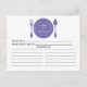 Tarjetas de recetas de la cocina de la ducha de la novia contemporánea con un elegante plato morado con tenedor y cuchara sobre un fondo blanco y fresco. La parte delantera de nuestra receta ofrece espacio para un título de receta, desde la cocina de y el espacio de ingredientes. Girar nuestra receta para ver las direcciones, el tiempo de preparación y el tiempo total. Visite nuestra tienda para recibir invitaciones a la ducha nupcial. Disponemos de una gran variedad de colores de ducha de boda. Invitación perfecta a la ducha de novias para las invitaciones a la ducha de novia.