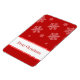 Brillante y divertido Let it Snow Holiday Premium Magnet en rojo brillante con una cascada de copos de nieve dibujados a mano. Este divertido imán sería perfecto para adherir notas y recordatorios a cualquier superficie magnética esta temporada de vacaciones y todo el invierno! Fácil de personalizar, simplemente añada el texto personalizado de su elección.