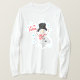 Esta es una adorable camiseta masculina de manga larga con un muñeco de nieve bailando en la nieve con las palabras "Que nieve".