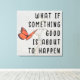 Arte mural de lienzo con cita motivadora ¿Qué pasa si algo bueno está a punto de ocurrir y una mariposa monarca? Alentate a ti mismo o a un amigo. Detengan el pensamiento negativo.
