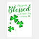 Deséenle a alguien un feliz Día de San Patricio mientras les recuerda lo especial que son para ustedes con este elegante diseño de tipografía de caligrafía, que incluye el mensaje "Que seas bendecida en el Día de San Patricio y siempre". El diseño incluye sobras verdes y acentos cardíacos sobre fondo blanco. Back tiene un lindo gráfico arcoiris con este mensaje totalmente editable, "Deseándote un día lleno de arcos, ollas de oro y montones de alegría irlandesa para durar todo el año. ¡Feliz Día de San Patricio!"