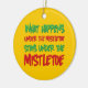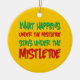 Divertido qué sucede debajo del muérdago, permanece debajo del ornamento del muérdago con la parte posterior del apellido encendido.