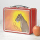 Esta es una pintura digital de una leona con una hermosa puesta de sol africana detrás de ella.