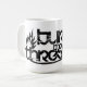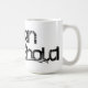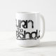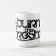 Taza clásica del café con leche con la quemadura el logotipo del umbral