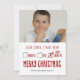 Cuta tarjeta de foto plana de feriado incluye una nota de Papá Noel Querida con casillas marcadas a mano para traviesa, agradable y no me juzguen y un saludo de "Feliz Navidad". El reverso es un patrón festivo de árboles de Navidad esbozados en un fondo verde azulado. Personaliza con tu nombre y foto.