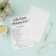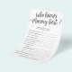 Diviértete en tu ducha con este divertido pequeño "test" para ver quién conoce mejor a la mamá. Agregue sus propias preguntas y texto personalizado utilizando el formulario de plantilla. Utilice la función "Personalizar adicional" para cambiar el color de fondo para que coincida con el tema fiesta. Utilice la opción de papel mate para escribir sobre.