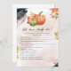 Diseñado para nuestra colección de Baby Shower Little Pumpkin, este personalizable que conoce a la mejor tarjeta de juegos mami presenta fondo rosa rubor, calabaza verde y naranja, texto purpurina de oro rosa y hojas de oro con letra manuscrita. Elementos coincidentes disponibles.