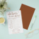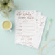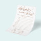 Diviértete en tu ducha con este divertido pequeño "test" para ver quién conoce mejor a la mamá. Agregue sus propias preguntas y texto personalizado utilizando el formulario de plantilla o déjelas como está. Utilice la función "Personalizar adicional" para cambiar el color de fondo y el encabezado del guión de forma que coincida con el tema del fiesta. Utilice la opción de papel mate para escribir sobre.