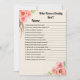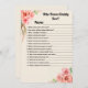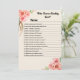 Diviértase jugando quién conoce a papá el mejor juego de ducha bebé con esta tarjeta de juego Baby In Bloom de duchas color rosa floral.