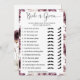 Un juego de personalizado para una ducha de novias, "¿Quién conoce mejor a la pareja?" invita a su invitado a responder preguntas personales sobre la novia y el novio. El invitado con las respuestas más correctas gana. El diseño de esta tarjeta de juego se coordina con la invitación a la ducha de novias rustica floral con una colección completa de productos y suministros fiestas para hacer que el hospedaje de su ducha de novia sea una brisa!