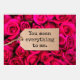 Que alguien sepa lo que significa con este diseño único que presenta una etiqueta de papel estilo kraft en un fondo de rosas rojas con un mensaje totalmente editable que dice: "Te refieres a todo para mí". El fondo de la página de atrás tiene un fondo de papel con este mensaje en tres partes. "Sin ti, estaría desesperanzadamente perdido. Estoy tan agradecido por ti, y nunca quiero darte por sentado. Te amo".