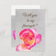 Preciosa, ¿quieres ser mi dama de honor tarjeta de invitación con hermoso corazón de acuarela, fondo rosa.