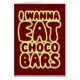 Quiero Comer Bares De Choco. Un choco bar, una barra de dulces o una barra de chocolate es una forma de repostería que se suele poner en forma de bar o de tronco, a menudo recubierta de chocolate, y que se puede tomar como refrigerio para una persona. Pero en ese plazo, existe una amplia variedad de productos, que van desde barras de chocolate sólido hasta múltiples capas o mezclas de ingredientes como nueces, fruta, caramelo o fondant que no contienen chocolate. Globe Trotters se especializa en imágenes idiosincrásicas de todo el mundo. Aquí encontrará tarjetas de felicitación únicas, postales, Posters, Mousepads y más.