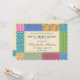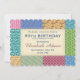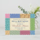 Celebre cualquier ocasión con esta invitación de 5 x 7 que presenta un diseño que recuerda a un colcha de gingham de estilo antiguo en tonos azules, rosas, verdes crema, amarillo dorado y agua. Hacerlo único y cambiar el texto con las plantillas que se proporcionan fácilmente y la función 'Personalizar It!'. Esta muestra muestra cómo se vería una celebración de cumpleaños número 90, pero puede ser personalizada para cualquier cumpleaños, ocasión especial o evento. Tanto la parte frontal como la posterior de la invitación incluyen obras de arte personalizado y todo el texto se puede editar.