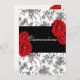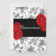 Fondo damasco blanco y negro con bonitas rosas rojas. Banner negro para añadir el texto deseado. Personalizar de texto a sus necesidades. Cambio a Dulce Dieciséis, o Bat Mitzvah. Todos los elementos de diseño se pueden mover y cambiar de tamaño según sus especificaciones.