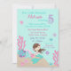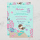 La quinta tarjeta de la invitación del cumpleaños de little mermaid con las criaturas subacuáticas y una foto insertan la plantilla.